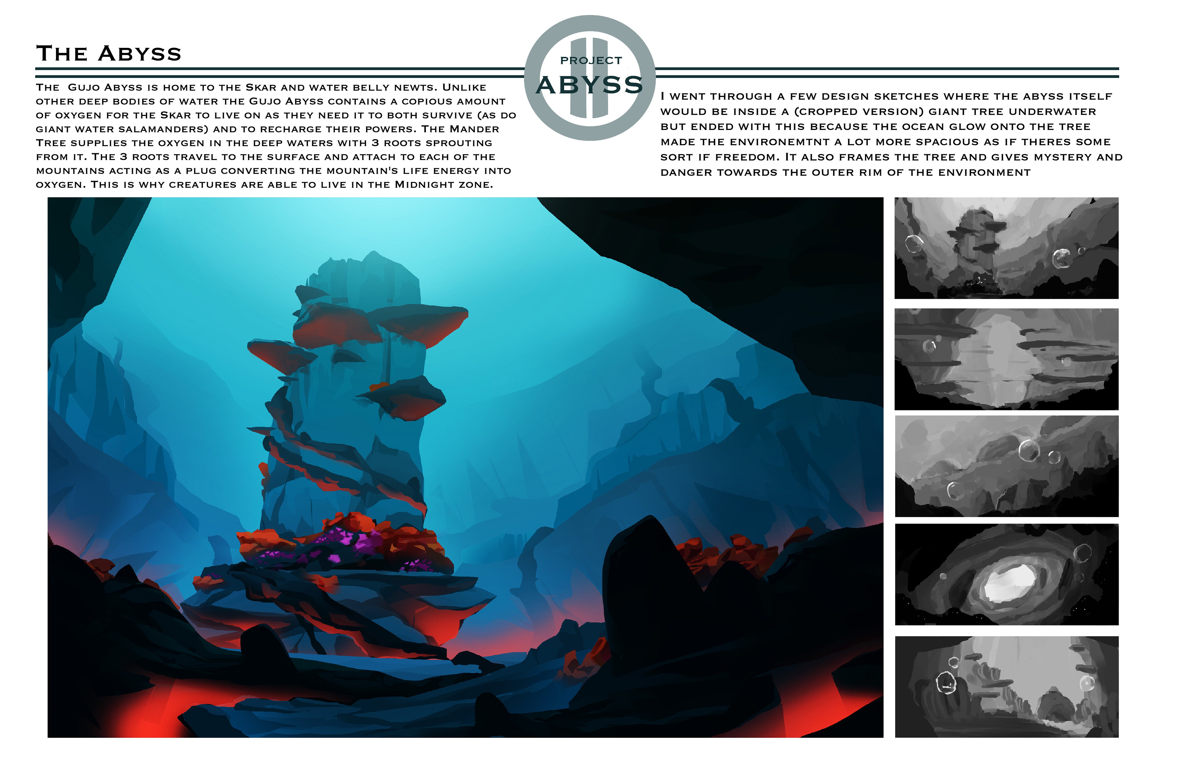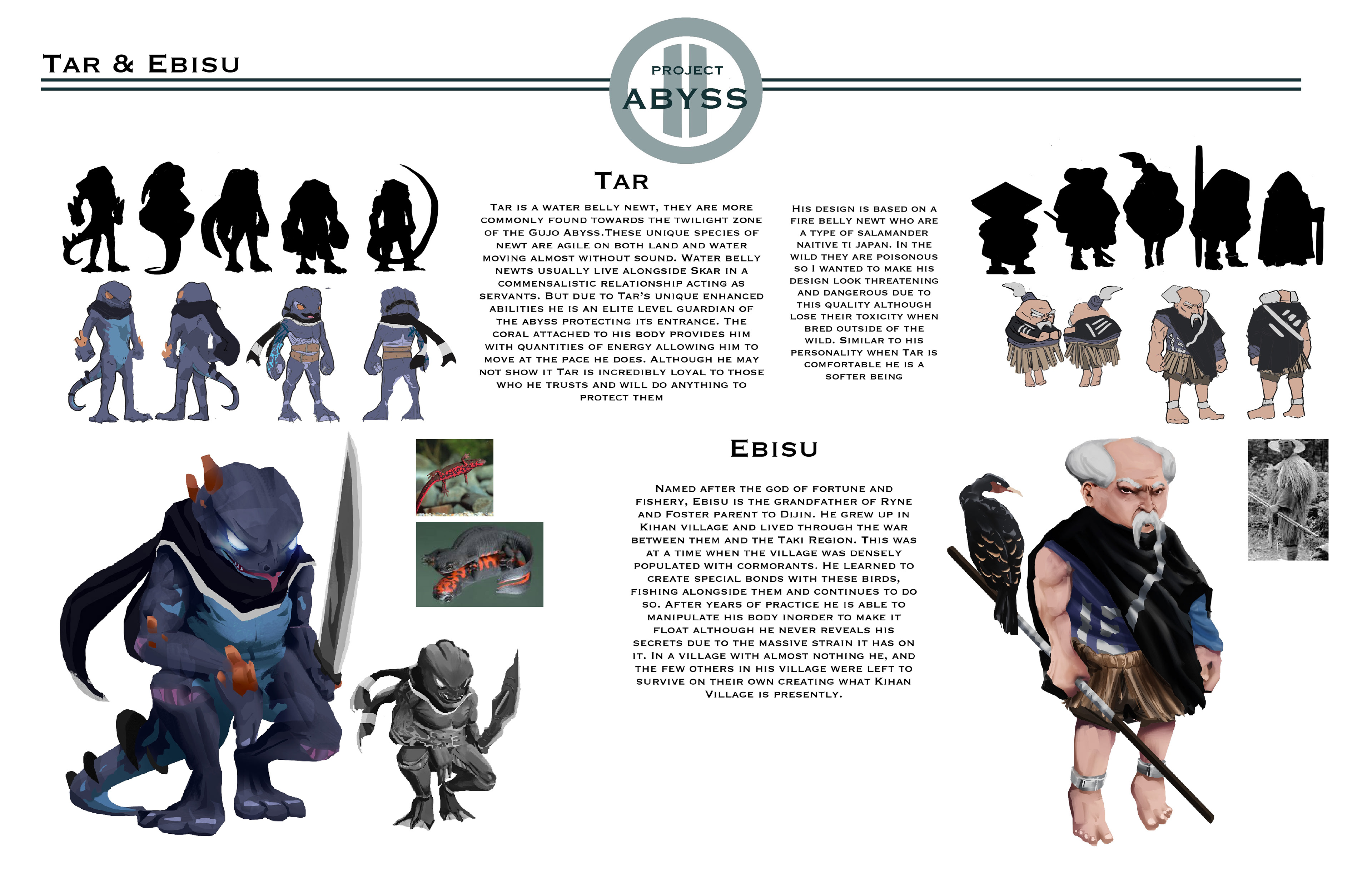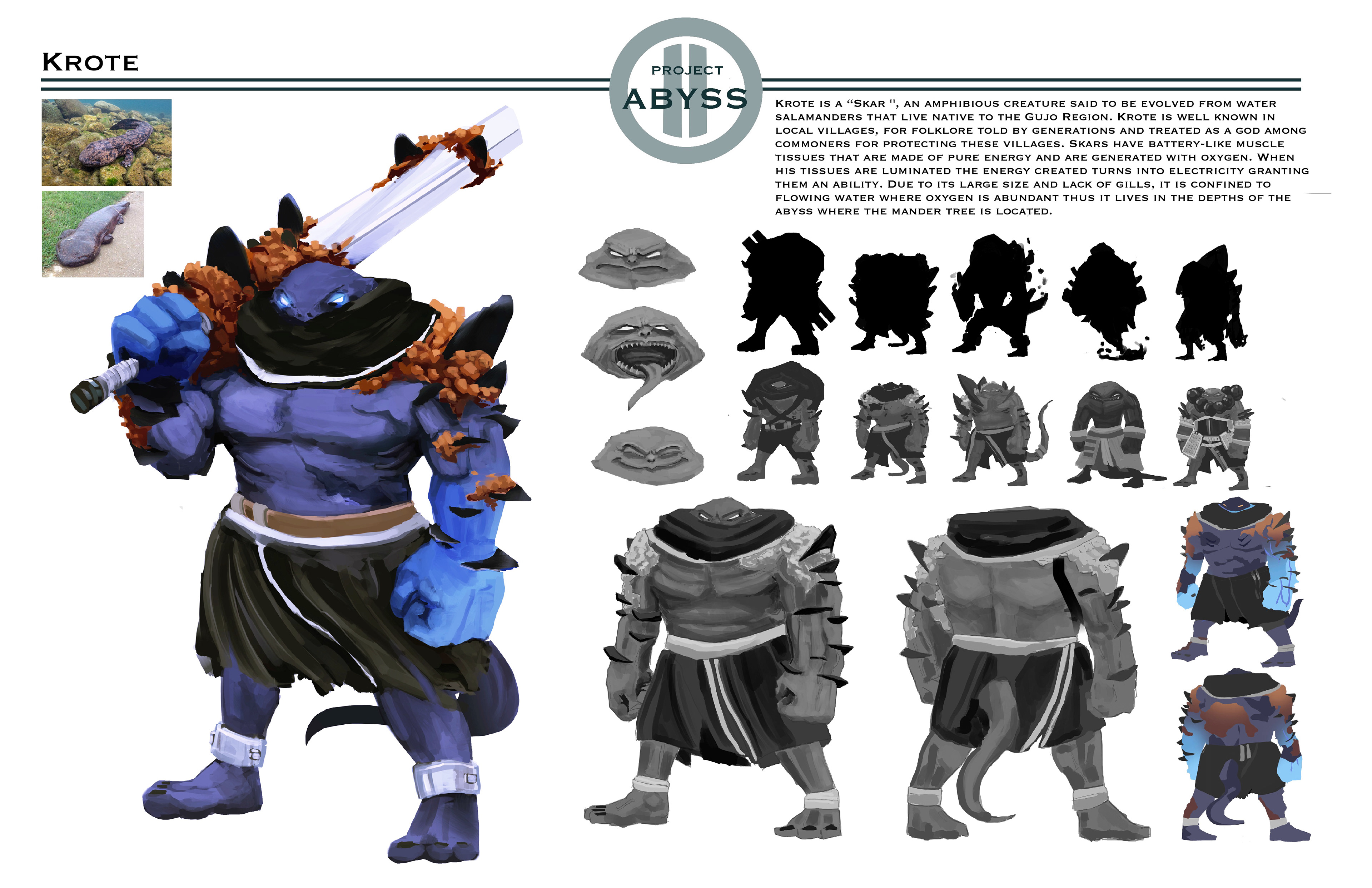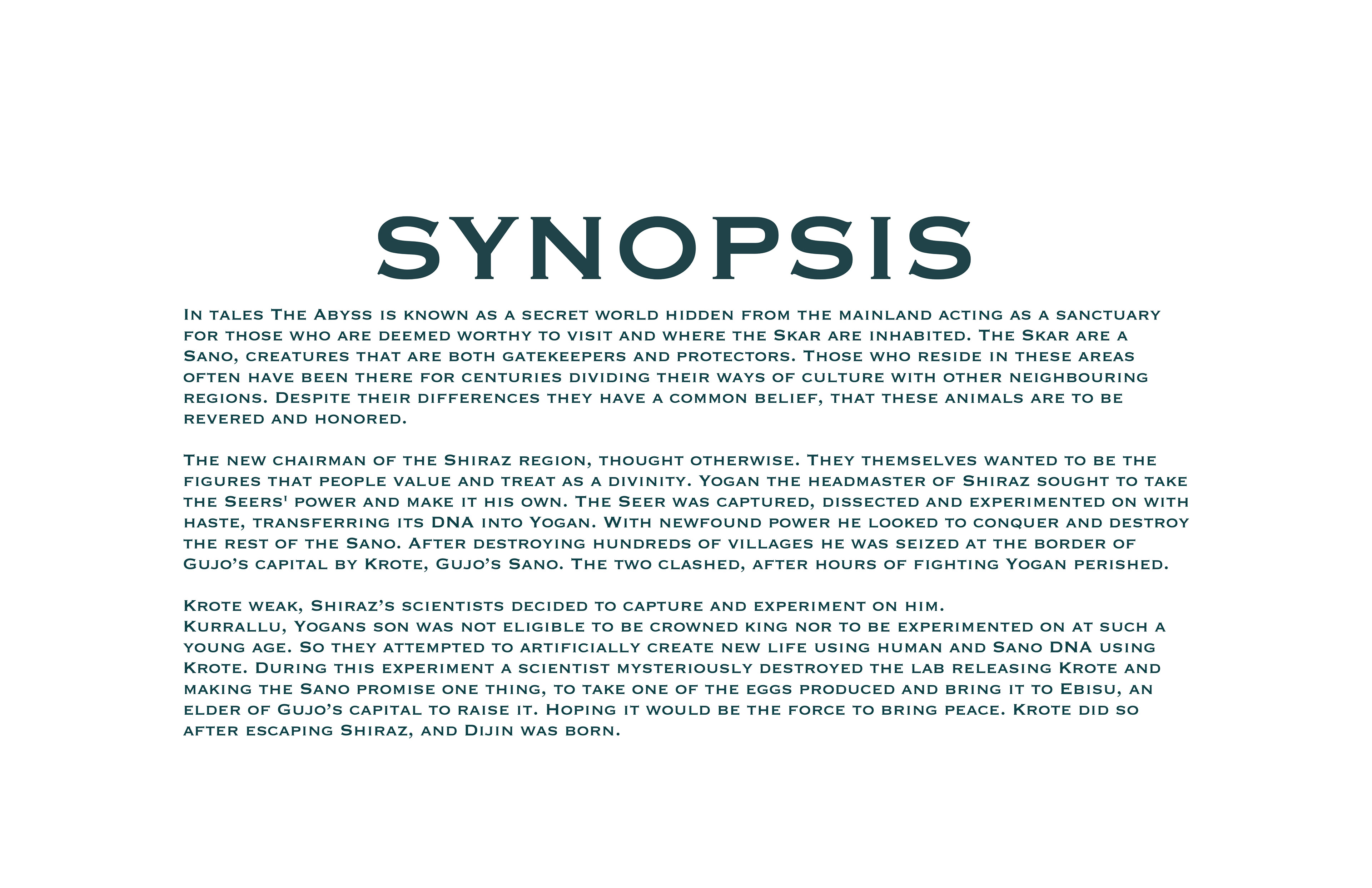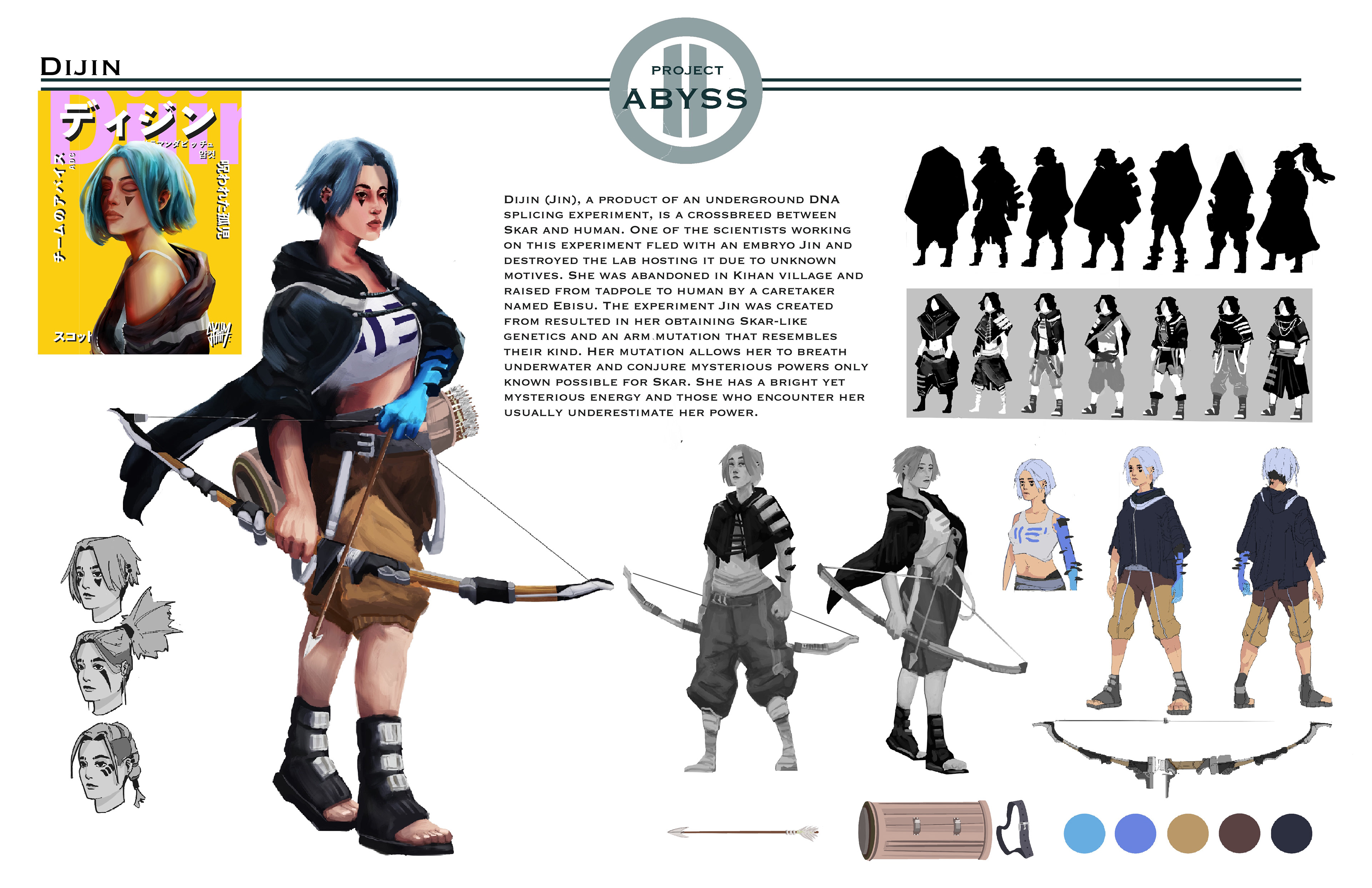 Team Abyss is a band of anti-heroes with powers only heard of from folklore. Their powers originate from the depths of Gujo Abyss, a body of hidden underwater ruins. These ruins are homes to the Skar, unique creatures said to be evolved from water salamanders that are uncommon in the region. Each individual on Team Abyss gained strength through these ruins from genetic experimentation, discovery, or transmutation.